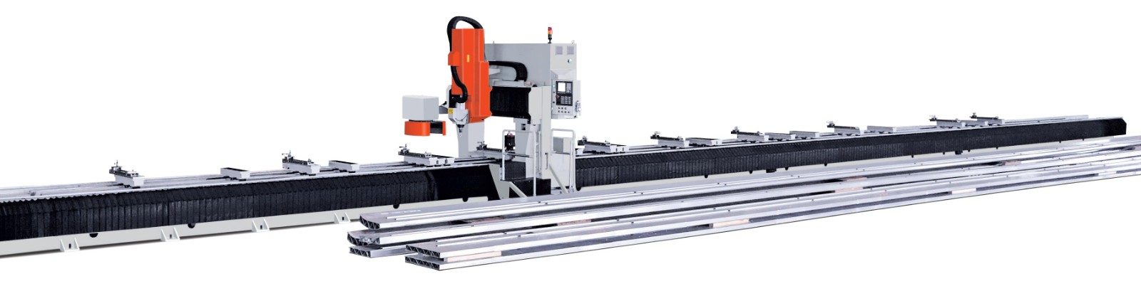 適用于軌道交通鋁型材和各種工業(yè)鋁材的孔、槽及輪廓形狀等復(fù)雜工序的加工,具備銑削、鉆削、鋸切和鏜孔等功能。